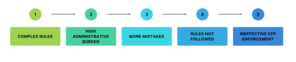 This vagueness and amount of obligations imposes much administrative burden on the operators, which in turn decreases compliance. While recent changes to the frameworks reduced 28% of administrative burdens to the operators, it must be noted that new obligations have also been imposed. For example, operators must now keep an electronic logbook of all fishing operations. As many vessels conduct several (and up to 20) operations a day, this requirement will increase error risk.